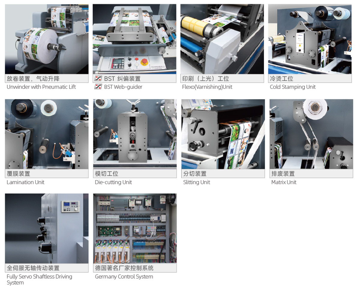 Two sensors are used to control the web-guider and one sensor to follow the registration mark. It's suitable for die-cutting of all kinds of adhesive labels and hologram labels. It's the ideal converting machine for flexo printing machine, screen printing machine and gravure printing machine.